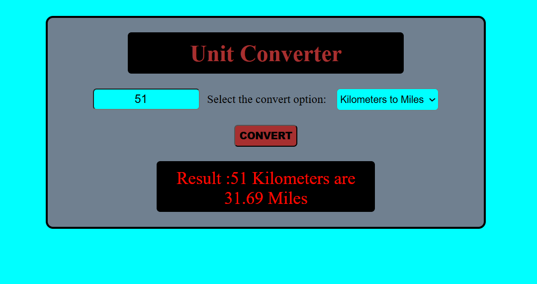 This unit conversion project is very simple, but I have a lot of appreciation for it, because I was able to clarify and solve some doubts that were very relevant to the topic of programming in JavaScript.