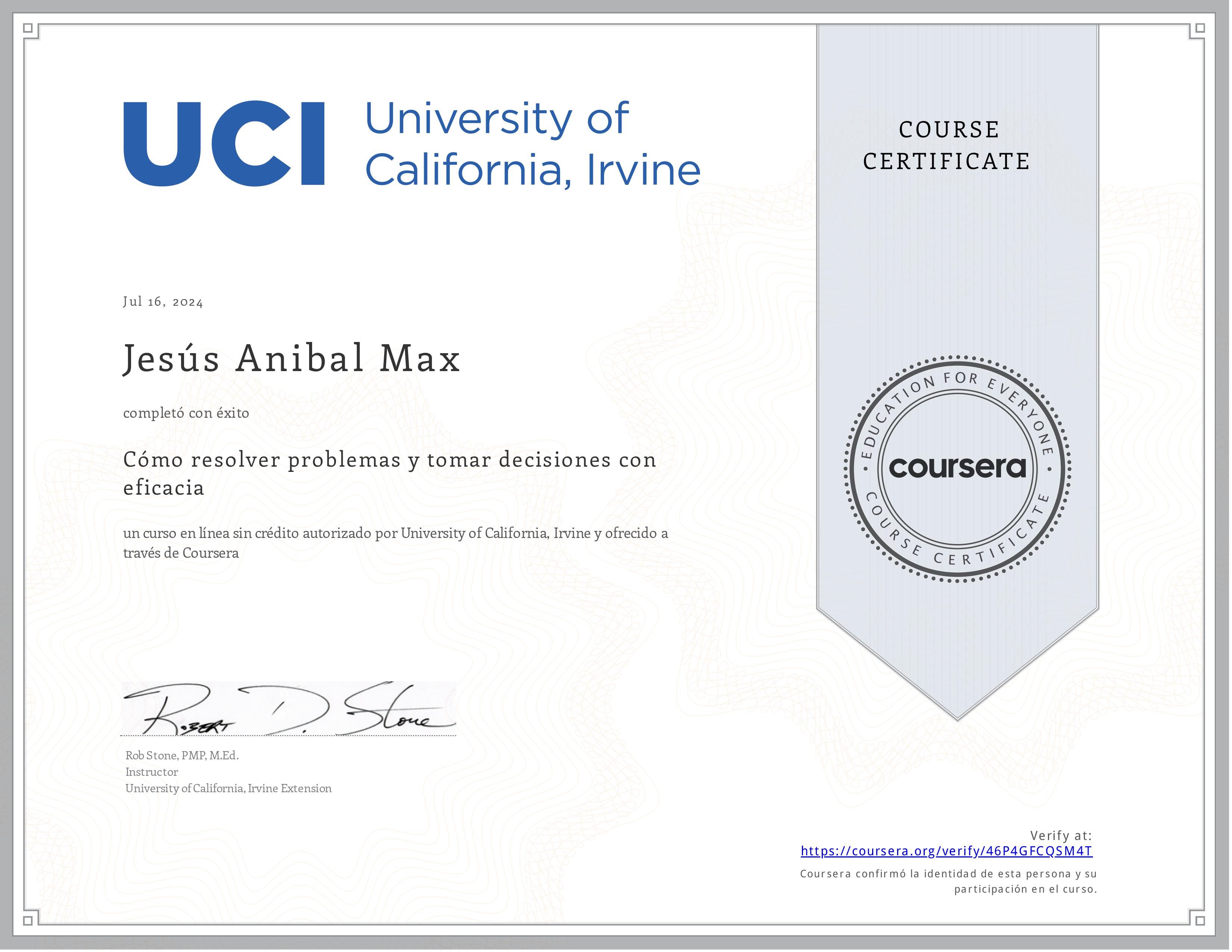 Earning my certificate taught me how to solve problems and make decisions effectively, improving my analytical and strategic skills. Now, I can tackle complex challenges with confidence and find innovative solutions quickly.