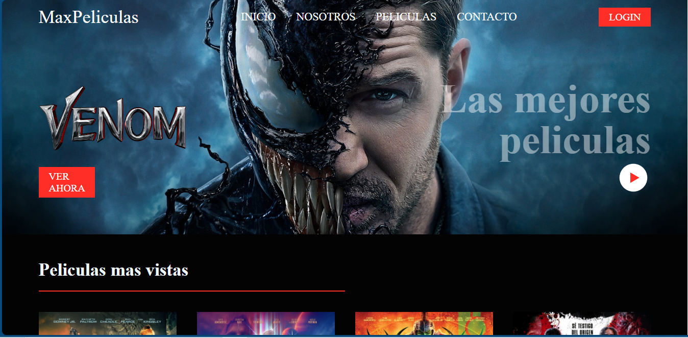 In this project "Max Movies", I wanted to show a web page to watch movies, where I managed to show in an intuitive and elegant way the options of the titles to see divided by sections and with interaction in the necessary parts.